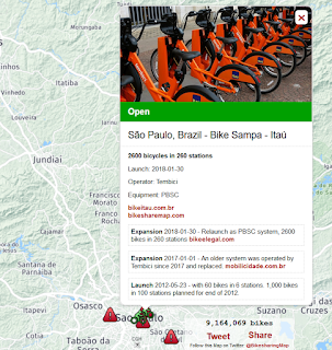 As I quoted Lyon, France’s mayor in the 1/21/08 blog post, “There are two types of mayors -- those who have bike-sharing and those who want bike-sharing.” Fortunately, not long after that post, Russell Meddin joined me in curating the Map and eventually became the Map’s sole curator with a substantial time commitment over his morning coffee. Since then, the Map has grown to over 3,000 entries, painstakingly added one-by-one over the past 13 years as each unique new service develops, implements, and in some cases, permanently closes.